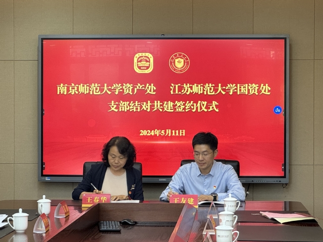 为进一步推动党建与业务工作相融互促,推动国有资产管理提质增效,5月11日上午,我校机关党委第二十党支部(国有资产管理处党支部)与南京师范大学资产管理处党支部开展支部结对联学共建签约活动。南京师范大学党委常委、总会计师任雷鸣,我校党委常委、副校长董晓臣,南京师范大学资产管理处党支部及我校机关党委第二十支部党员代表出席仪式。