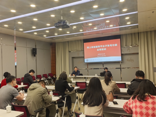 为方便全校各归口管理部门了解并掌握网上商城操作流程,进一步推进电子化采购工作,10月17日,招投标办公室开展了网上商城服务平台子账号功能应用培训,各采购项目归口管理部门网上商城服务平台子账号管理应用人员参加活动。活动由招投标办公室主任郝达主持。